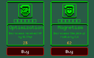 7 weapons and 7 passive items available in version 0.1.0.
